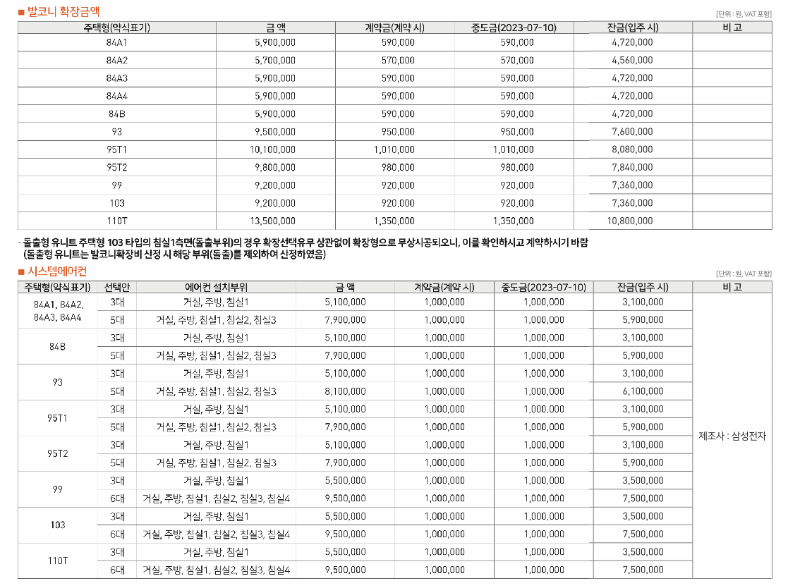 발코니 확장 금액이 저렴하다는게 장점인데요.