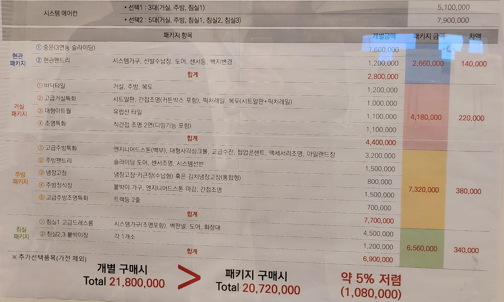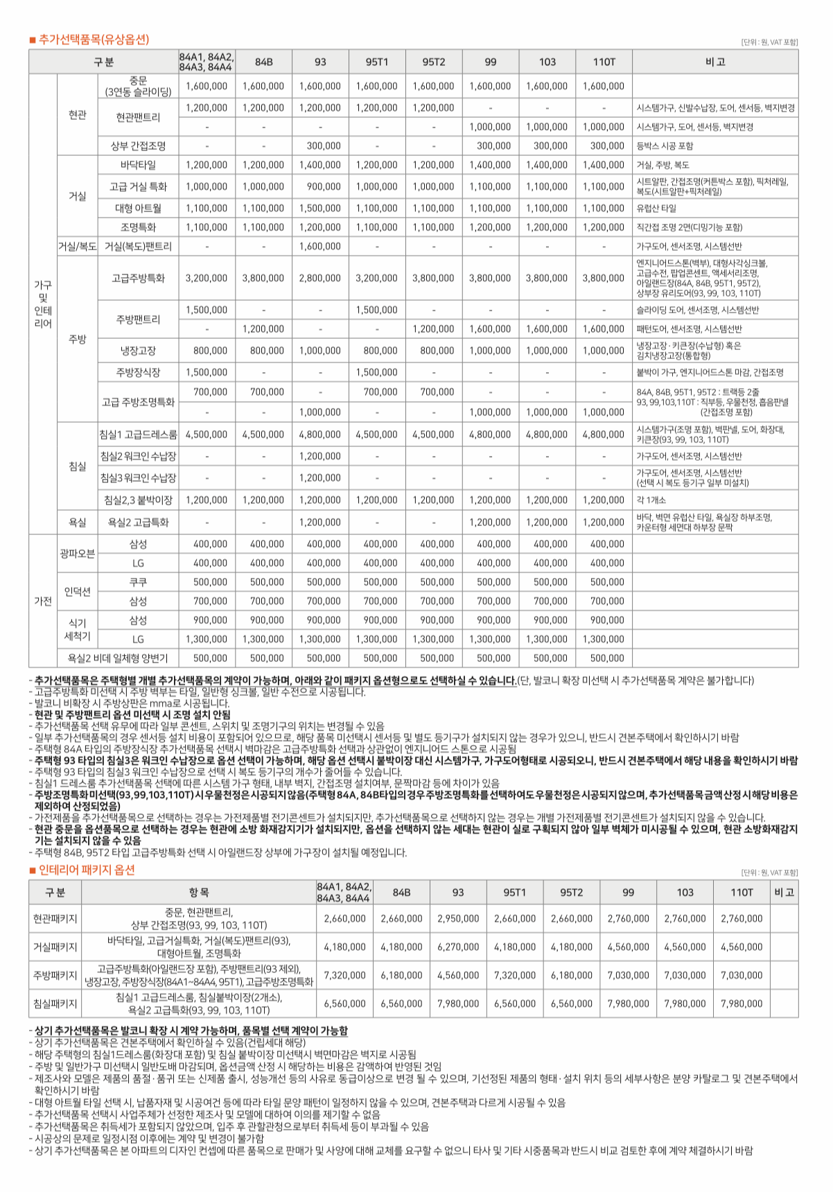 84A타입 기준 유상옵션 패키지 구매 가격입니다.