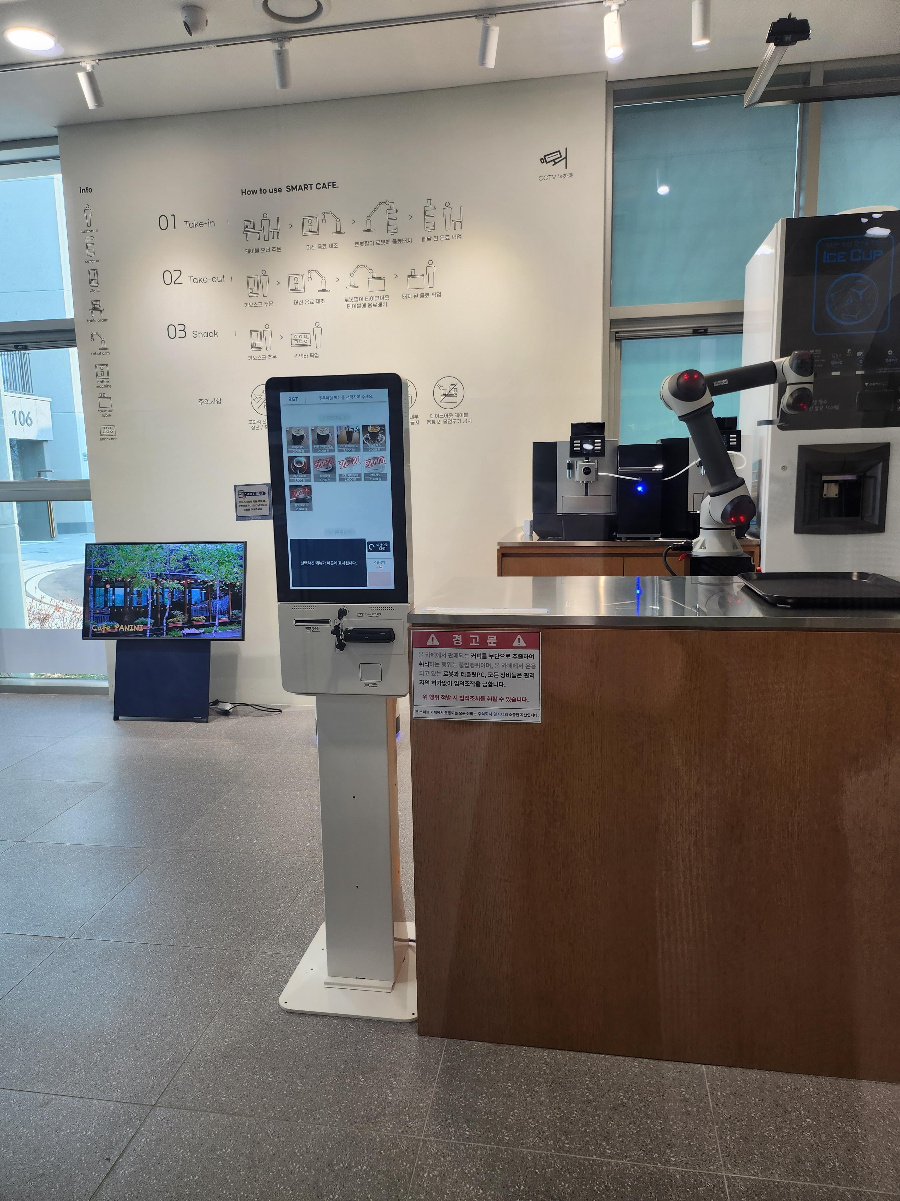 로봇이 커피를 내려주는 스마트 카페입니다.