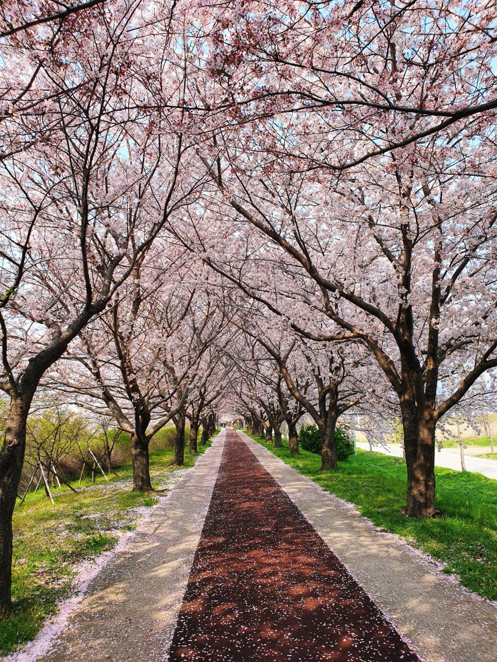 양쪽으로 수많은 벚꽃 나무들의 행렬!