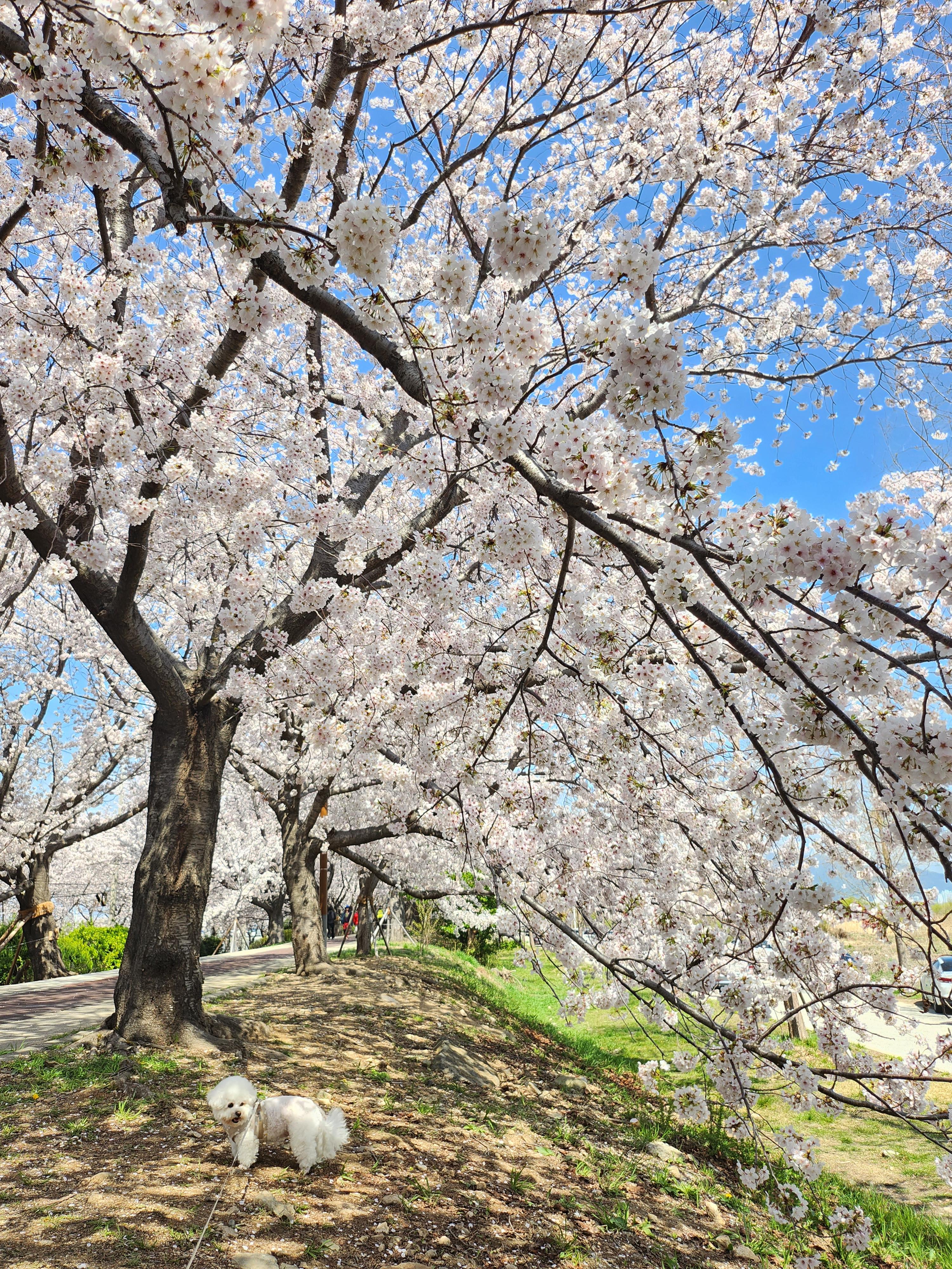 네비게이션은 맥도생태공원으로 검색하고 출발했지만 목적지 도착 4km 이전부터 이미 벚꽃 길이라 자리 보이는 곳에 바로 주차했습니다.