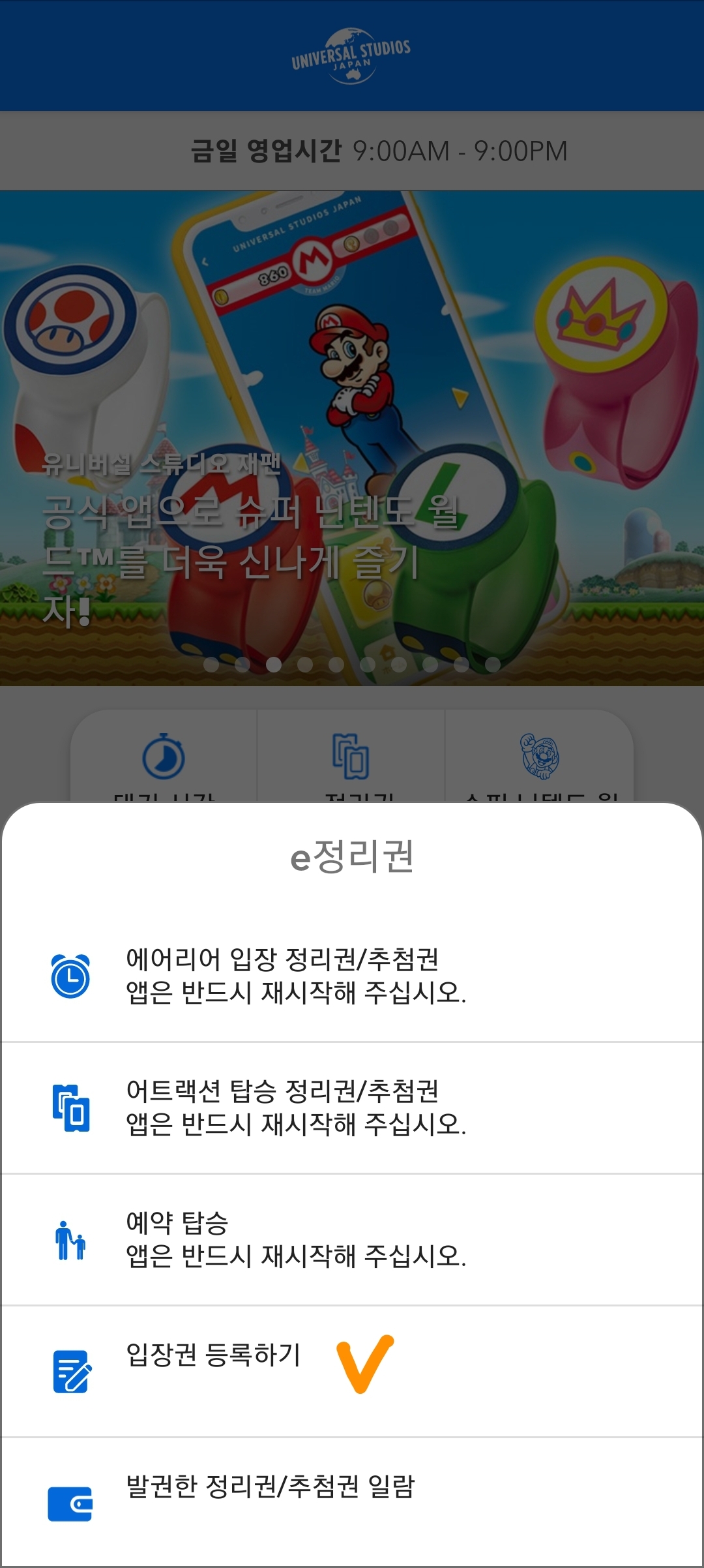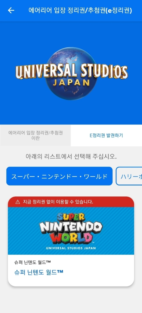 4. USJ 어플에서 닌텐도 월드 정리권 발급하기