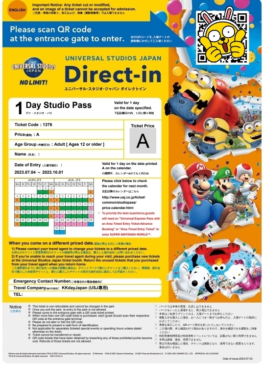 택스 포함 5,500엔 이상 구매 시, 택스 리펀이 가능한데 식당, 일부 기념품(팝콘) 등은 포함이 안되니 참고해주세요.