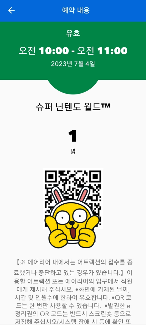 티켓 등록하기 : 티켓을 어플에 미리 등록해둬야 입장하자마자 닌텐도 월드 입장 확약권을 받을 수 있어요!