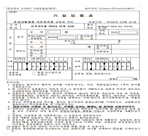 6. 기일입찰표를 미리 작성하여 혹시나 실수 한게 없는지 수차례 확인하였다.