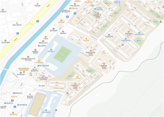 현장 방문 전에 지도를 펴고 입지를 확인해보았다. 208세대에 인근 중학교, 초등학교가 있고