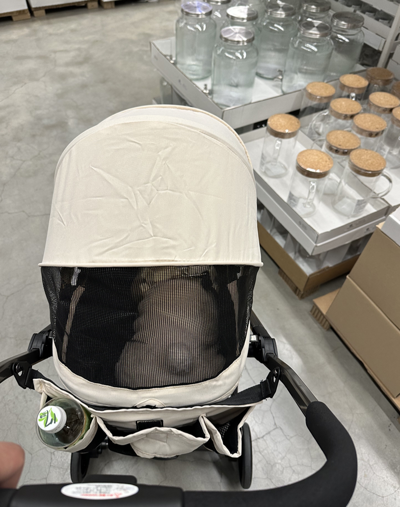 롯데아울렛에 쇼핑하러 왔는데(반려견을 개모차에 태우고 쇼핑함)