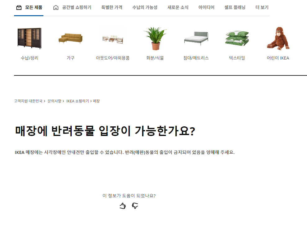 방문전 이케아 코리아 홈페이지에 QnA를 찾아보니 안내견만 방문이 가능하다는 내용이 있어 반신반의하였으나